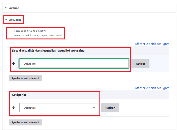 - Cocher la case “Cette page est une actualité”